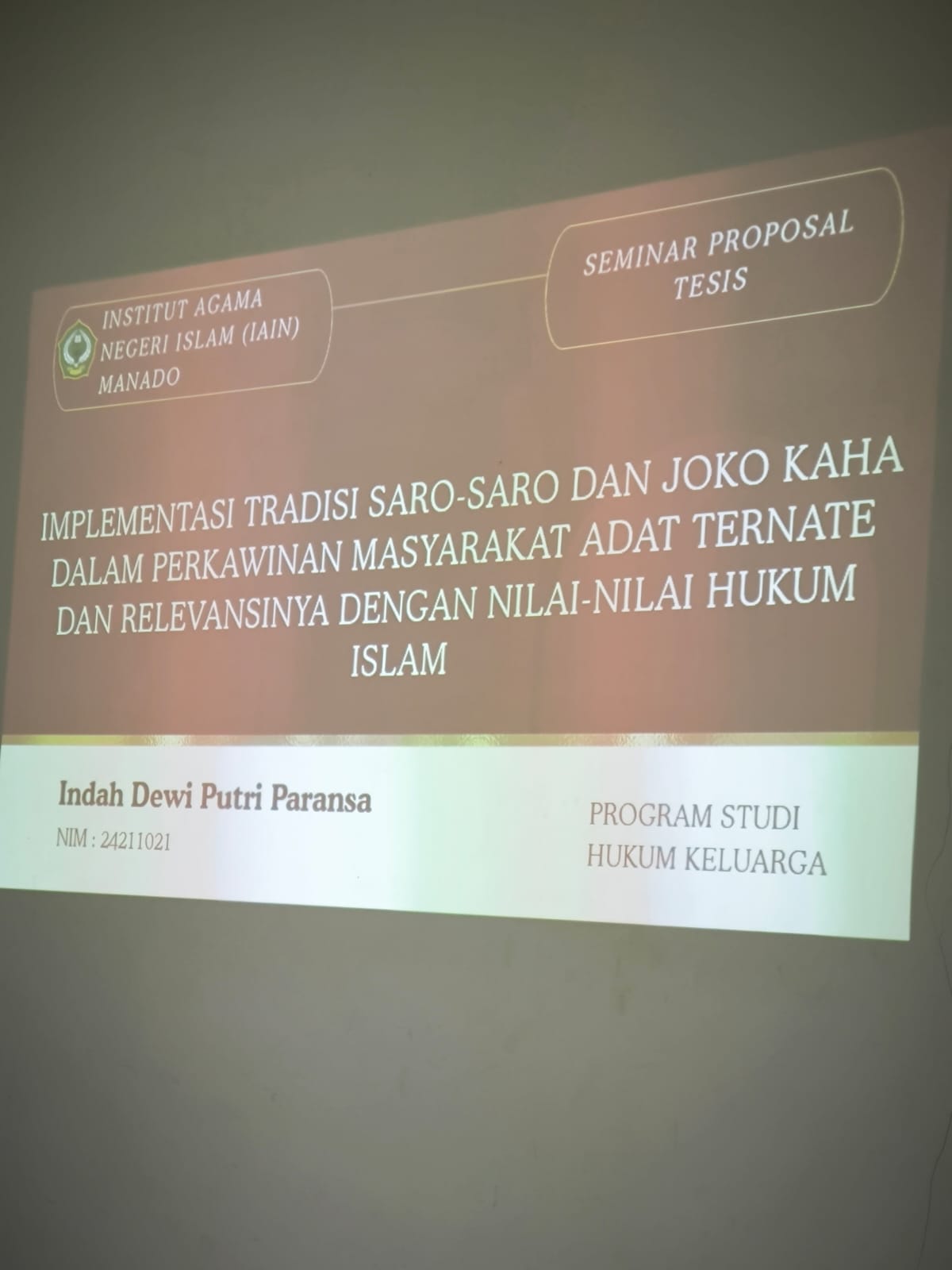 Minahasa Utara – Kampus II Institut Agama Islam Negeri (IAIN) Manado kembali melaksanakan seminar akademik yang menandai langkah penting mahasiswa dalam menempuh studi lanjutan pada jenjang magister maupun doktor. Dua kegiatan ilmiah yang digelar, yakni Seminar Proposal Tesis dan Proposal Disertasi, memperlihatkan keseriusan mahasiswa dalam mendalami kajian hukum keluarga Islam melalui perspektif adat dan pluralisme hukum.