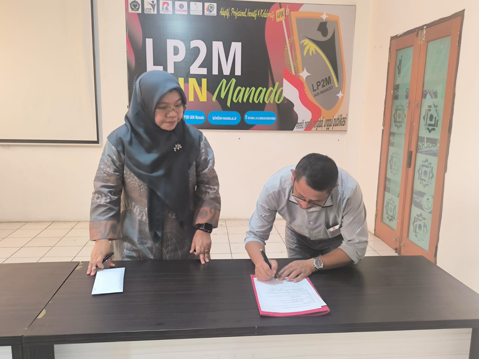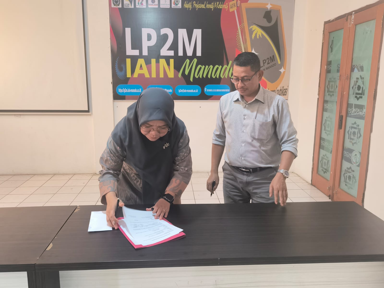 Dalam kegiatan tersebut, Rosdalina Bukido bertindak sebagai penerima bantuan penelitian MORA The AIR Funds tahun 2025. Melalui penandatanganan kontrak dengan Dr. Ardianto, M.Pd., selaku Ketua LP2M IAIN Manado, disepakati bahwa pelaksanaan penelitian akan berada di bawah pengawasan serta monitoring internal yang dilakukan oleh LP2M guna memastikan akuntabilitas penggunaan anggaran, kualitas pelaksanaan penelitian, serta kesesuaian dengan rencana penelitian yang telah disusun.
