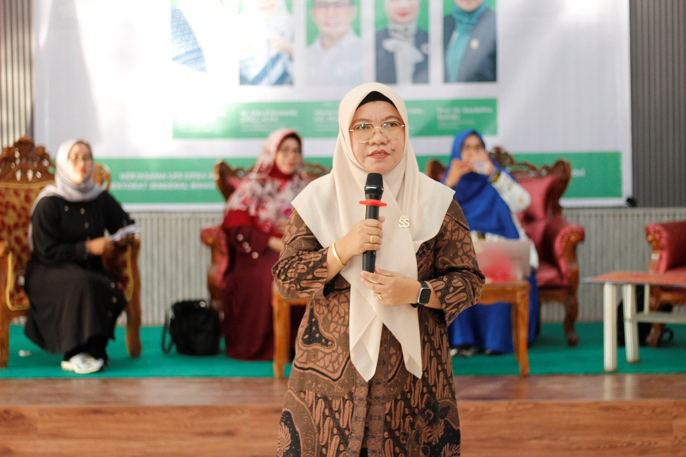 Sesi inti kegiatan dibawakan oleh Prof. Dr. Rosdalina Bukido, M.Hum., CPM. Di moderator oleh Siska Zakaria, S.H.I., memaparkan materi bertajuk “Pengembangan Sikap Inklusif & Toleransi serta Praktik Moderasi.” Dalam paparannya, Rosdalina menegaskan bahwa moderasi beragama bertumpu pada tiga nilai inti: kasih (rahmah), kelembutan (rifq), dan memudahkan (taysîr), nilai-nilai yang menghadirkan wajah dakwah yang menenteramkan, merangkul, dan tidak menghakimi. Ia menekankan bahwa toleransi bukanlah kompromi akidah, melainkan sikap menghormati keyakinan dan peribadatan pihak lain tanpa merendahkan simbol-simbol agama, sembari menjaga tutur kata damai serta etika dialog yang baik. Rosdalina juga menggarisbawahi pentingnya “adab sosial” dalam praktik keseharian jamaah majelis taklim: penataan pengeras suara, arus parkir, dan penyediaan ruang tunggu yang ramah bagi tamu lintas-iman, beserta kebiasaan “3S”—Salam, Senyum, Sapa—sebagai budaya damai yang mengikis prasangka dan memperkuat kohesi sosial.